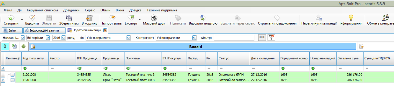 Приклад відображення попередніх версій звітних форм у вікні “Податкові накладні”